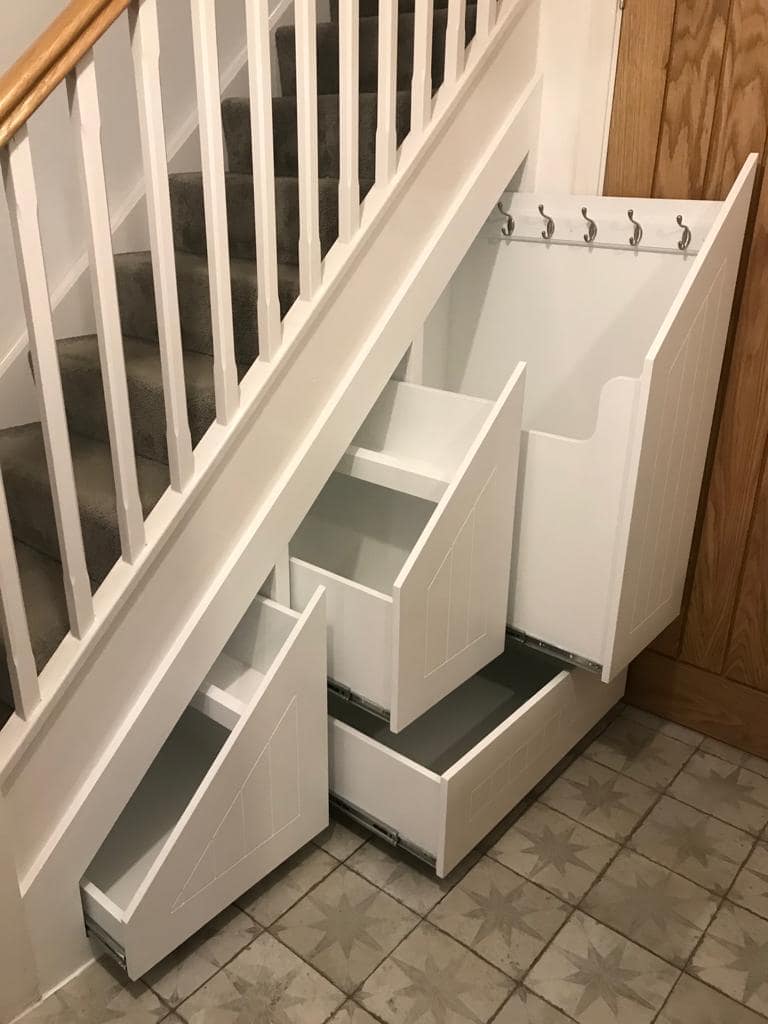 The service offered here is limitless. If you have a space under the stairs, in a bedroom or lounge we can create storage solutions to suit your needs. We listen to what you need in the space and create a design that will maximise the use of the whole space. We can add soft closing doors, sliding doors, doors that you push to open. We can add fixed or removable shelving. The design can incorporate hidden features such as secret cubby holes for important documents or high value items. You can consider having the design completely symmetrical or asymmetrical We have an extremely wide range of finishes available for the face of the display. These range from pre-finished decorative panels, a full range of hardwoods or have them professionally spray painted using any paint colour you choose.Fitted storage solutions in Gloucestershire